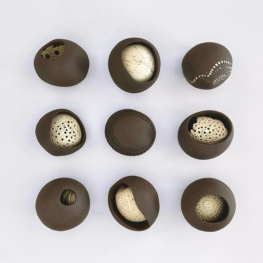 Relics is a collection on of palm-sized clay vessels that reflect the smallness of human experience set against natures immensity.