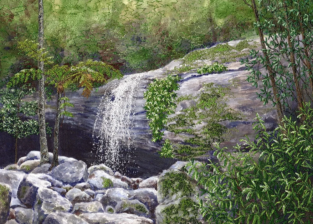 Buderim serenity | 2026 | textile, mixed media | 33.5 x 40.5cm