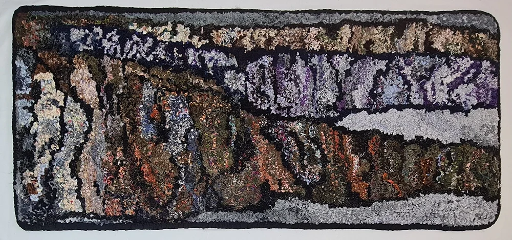Silent sentinels | 2026 | recycled textiles on rug canvas | 54 x 120cm