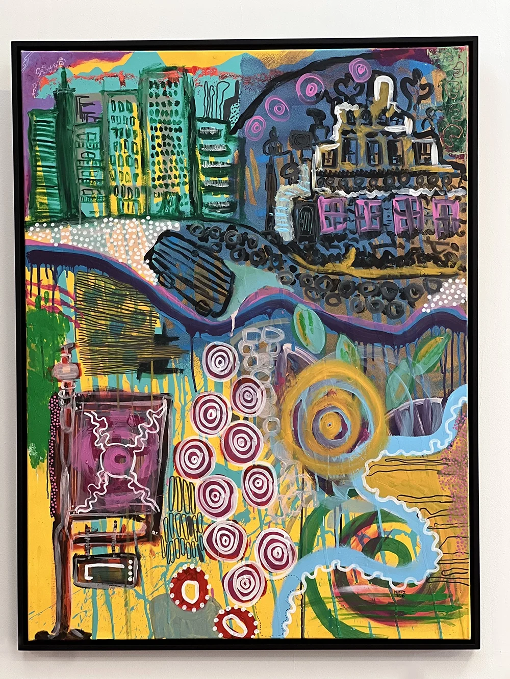 Nikita Fitzpatrick | City lights and circles | 2025 | mixed media | 120 x 90cm