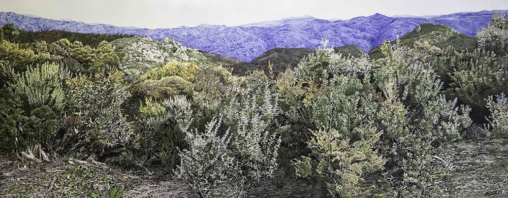 Phillip Roltan | Tasmanian high country | 2024 | watercolour, pen and ink | 65 x 116cm