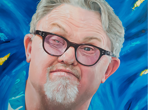 Ben, Jay and OJ at the Kin Kin 40hr Jammin, Mt. Pomona | 2021 | acrylic on canvas | 110 x 80 cm