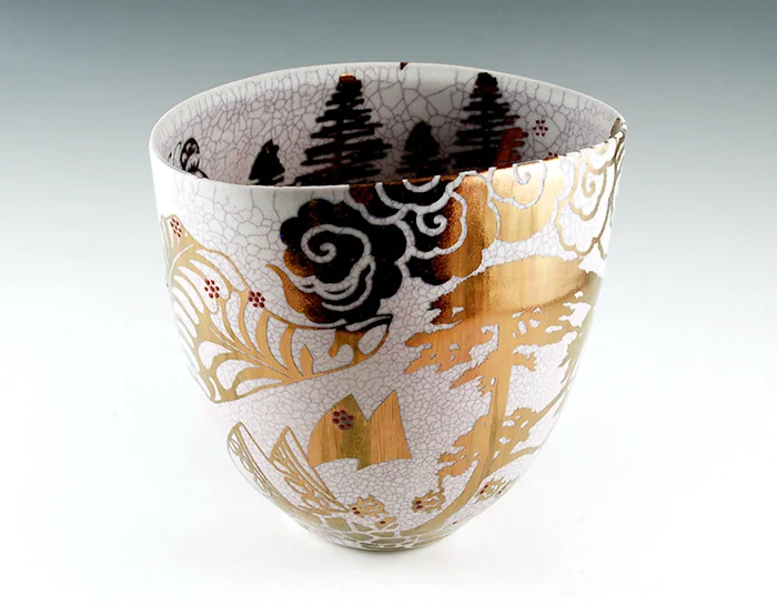 Johanna DeMaine | _Soar Like an Eagle_ | 2020 | porcelain, clear glaze, lustre, gold, sand etched | 18 x 20 x 16 cm