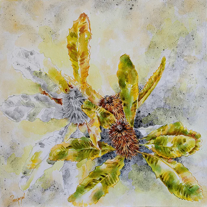 Spent Banksia | 2020 | acrylic, charcoal, graphite | 50.7 x 50.7 cm