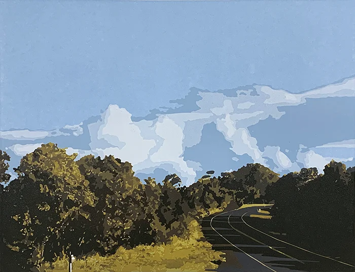 Kim Herringe | The Long Way Home | 2020 | hand printed reduction linocut | 60 x 51 cm