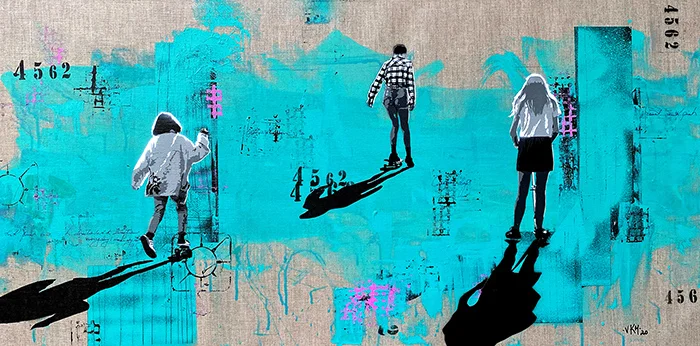 Small Town Girls | 2020 | aerosol, ink, acrylic on linen | 62 x 123 cm