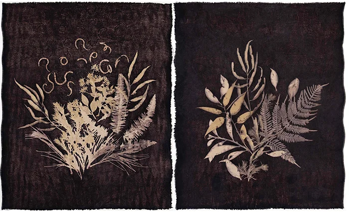 Anne Harris | Wallum Still Life I & II Dyptich | 2021 | natural dye on silk | 80 x 114cm