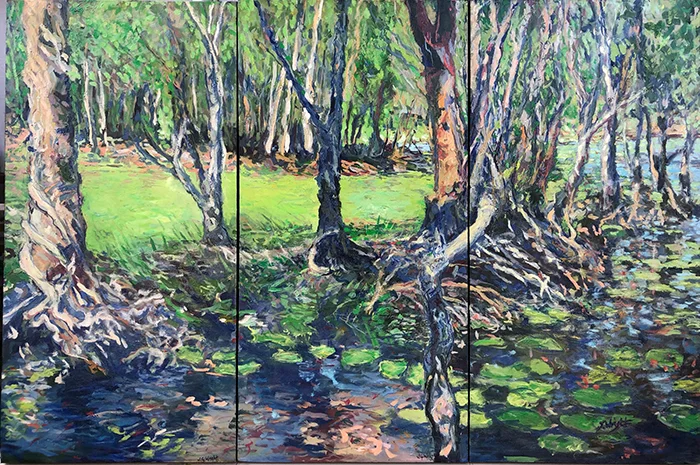 Jonathan Wright | Swampland - Ewan Maddock Dam | 2021 | oil on canvas | 101 x 152cm