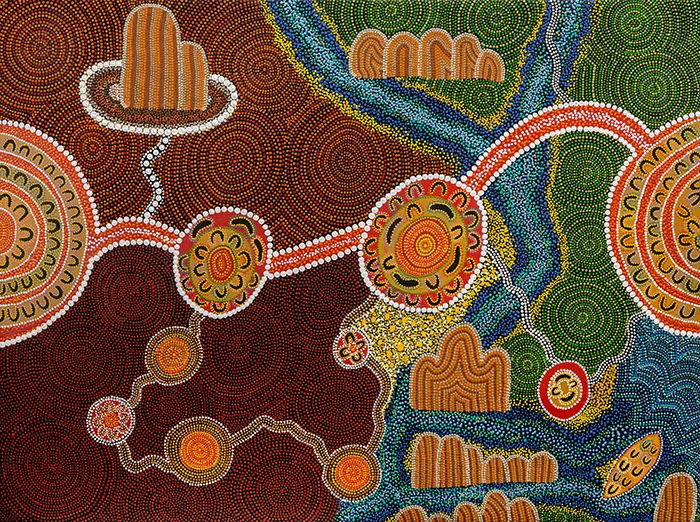Paul Constable-Calcott (Wiradjuri) | Traveling Country | 2021 | acrylic on linen | 84 x 113cm