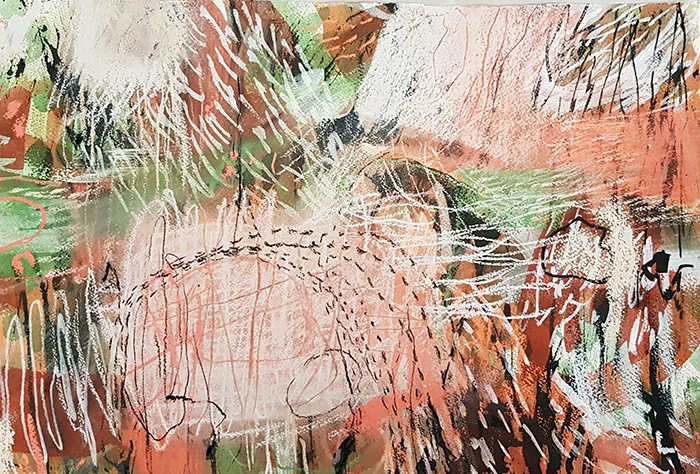 Spring Showers and Birdsong, Postcode 4563 | 2021 | inks and pastel on Arches watercolour paper | 75 x 58cm