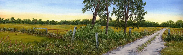 Bernardine Hine | Rusted Gate | 2022 | textiles/mixed media; framed: 25.5 x 56cm