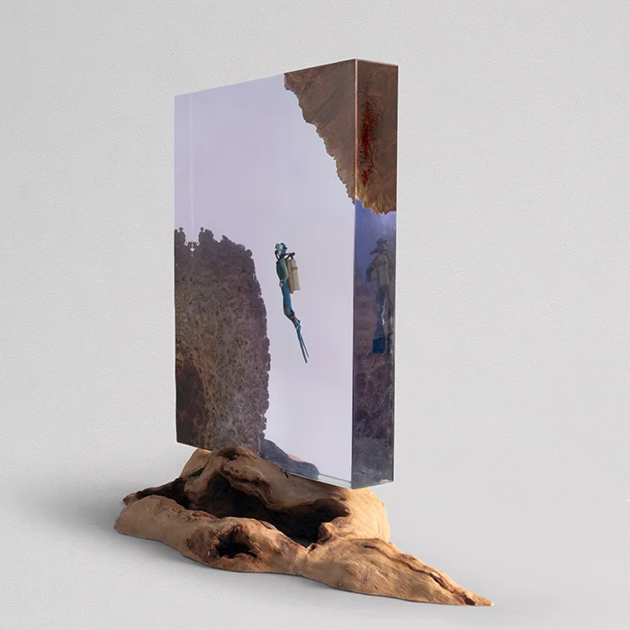Carlie Johnston | The Abyss | 2022 | resin, timber; 39.5cm x 28.5cm x 6cm with base