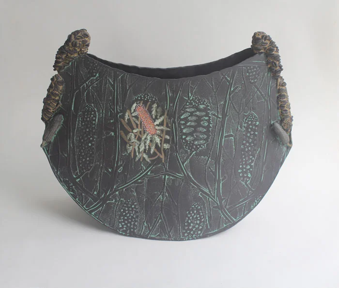 Carol Forster | All about the Banksia | 2024 | black clay and stains | 28 x 36 x 15cm