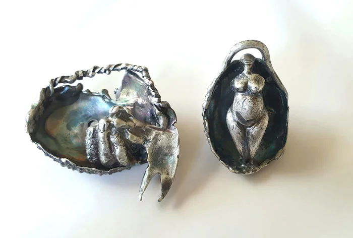 Tidal Pool Pair (Coastal Connections and Tidal Pool Amulet) | 2024 | lost wax carved and casting recycled silver with patina
