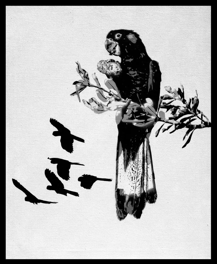 Viki Murray | Feeding Time, Laguna Bay | 2024 | aerosol on linen | 79 x 64cm