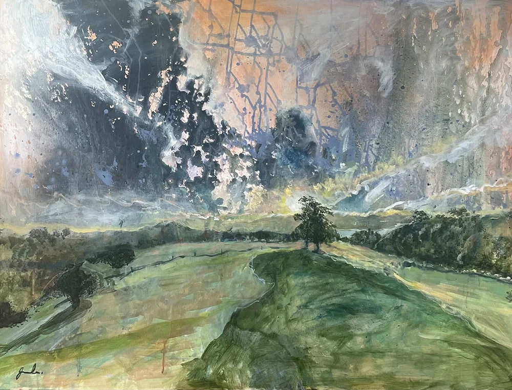 In the heart of my work Childhood Friends two trees emerge, their roots embedded deep within the soil of our shared journeys. It symbolises the intricate paths we tread, the stories that intertwine, and the strength we draw from those who walk beside us. My painting is a tribute to the unwavering relationships that ground us, offering a tranquil refuge where memories and moments converge.