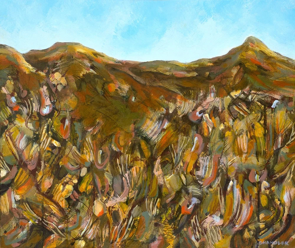 Over many years I have regularly walked in the wallum, getting to know its trees and wildflowers, and watching it change with the seasons. This work joyfully celebrates the profusion and diversity of wildflowers that populate this environment in spring. Through colour and gesture, I seek to portray this landscape as dynamic living Country, infused with memory and presence, and animated with a pulsing life force. My intention in foregrounding the wallum is that others might see it, value it and seek to preserve it.