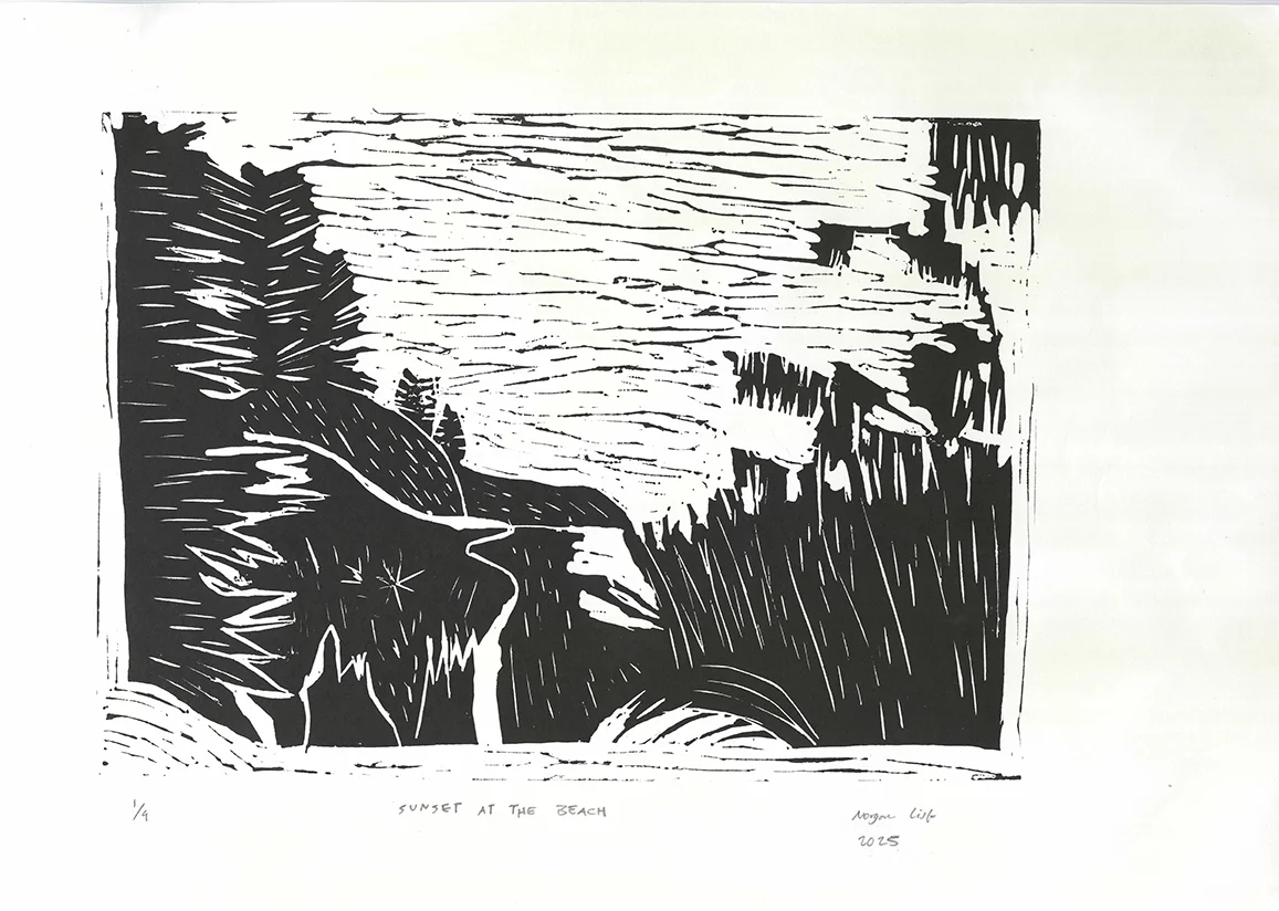 Morgan List | Sunset at the Beach | 2025 | lino print; ed 1/4 | 30 x 42cm