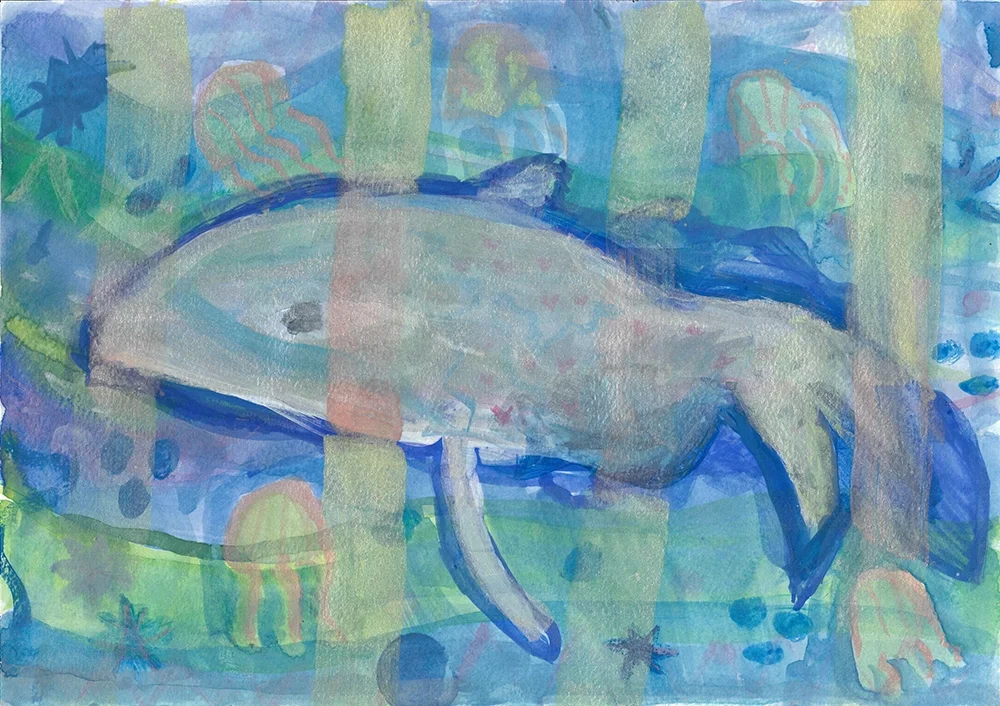Lily Burrrell | Whale | 2026 | watercolour and water based pigment on paper | 21 x 30cm