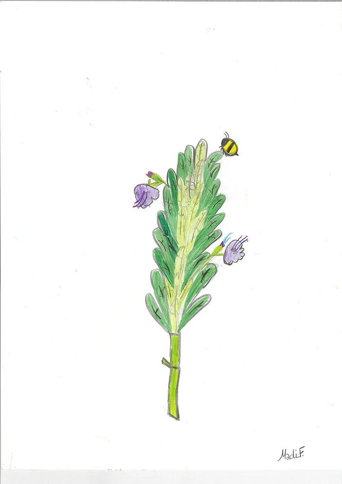 I drew this because we grew rosemary during COVID-19 and when I went for a walk in the garden I could hear the bees buzzing.