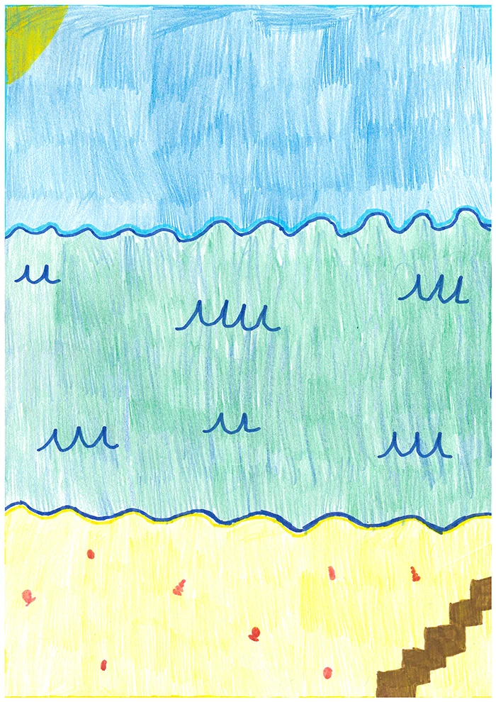 Whenever me and my family want to go to the beach, we will usually go to Wurtulla. What inspired me was that whenever I see the beach it looks a bit plain, like it is pretty, but I’ve always thought it needs just a little bit more pizzazz and colour, so I thought why don’t I draw it. I called it “Wurtulla Beach in my eyes” because, this is Wurtulla Beach with more colours, yay!