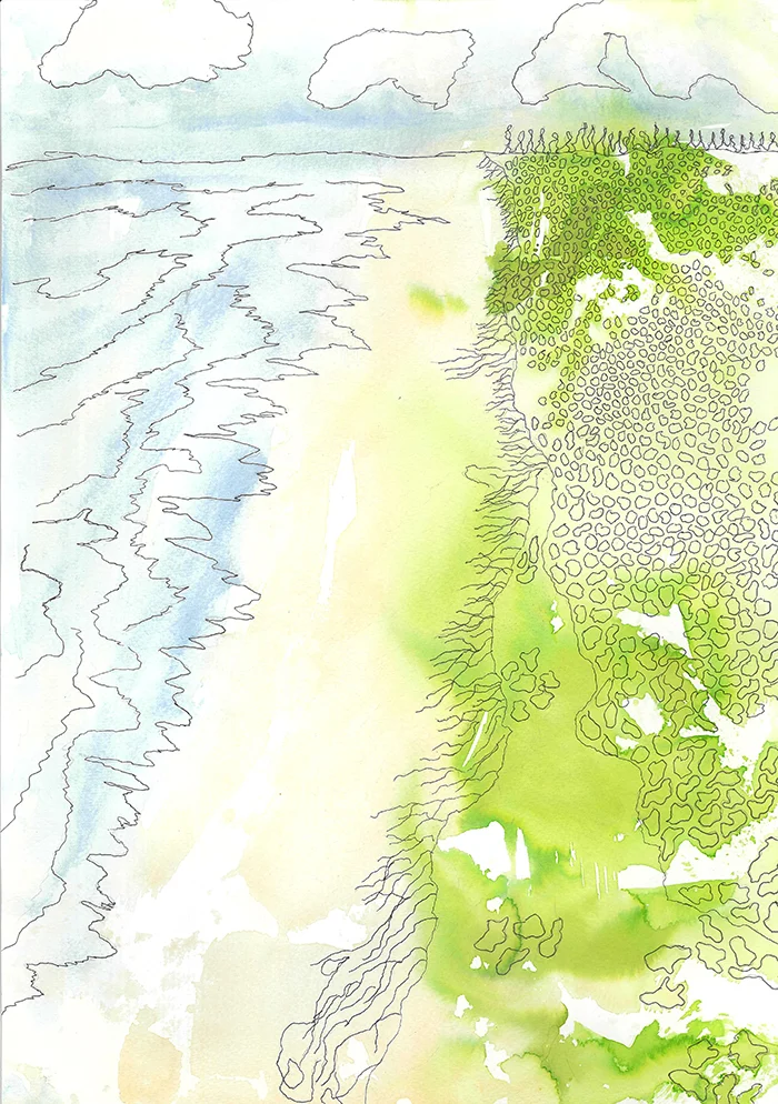April Crennan | Bokarina Beach | 2022 | watercolour and ink