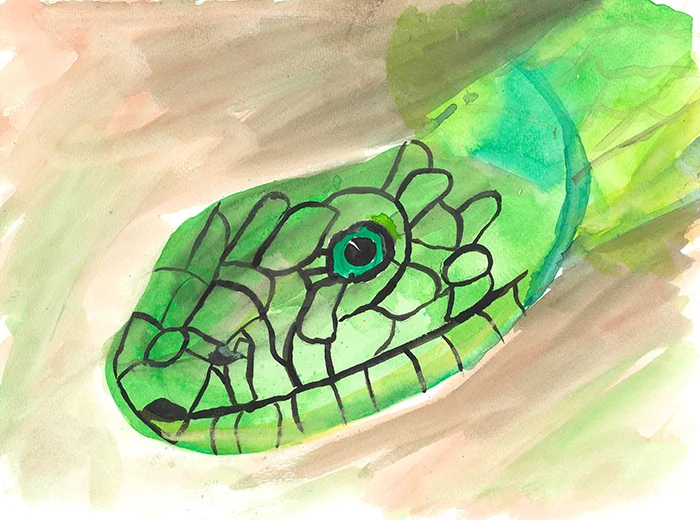James Law | Green Tree Snake | 2023 | watercolour on paper | 23 x 30.5cm