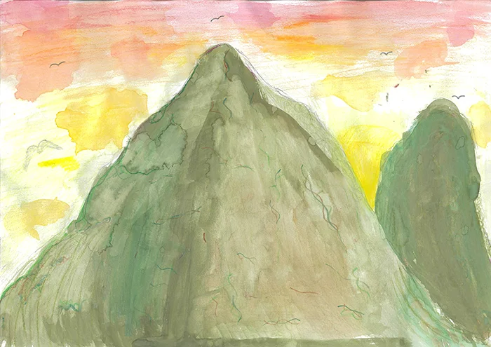 Rylee Fawdon | Mountains Rising | 2023 | pencil and watercolour on paper | 21 x 29.7cm
