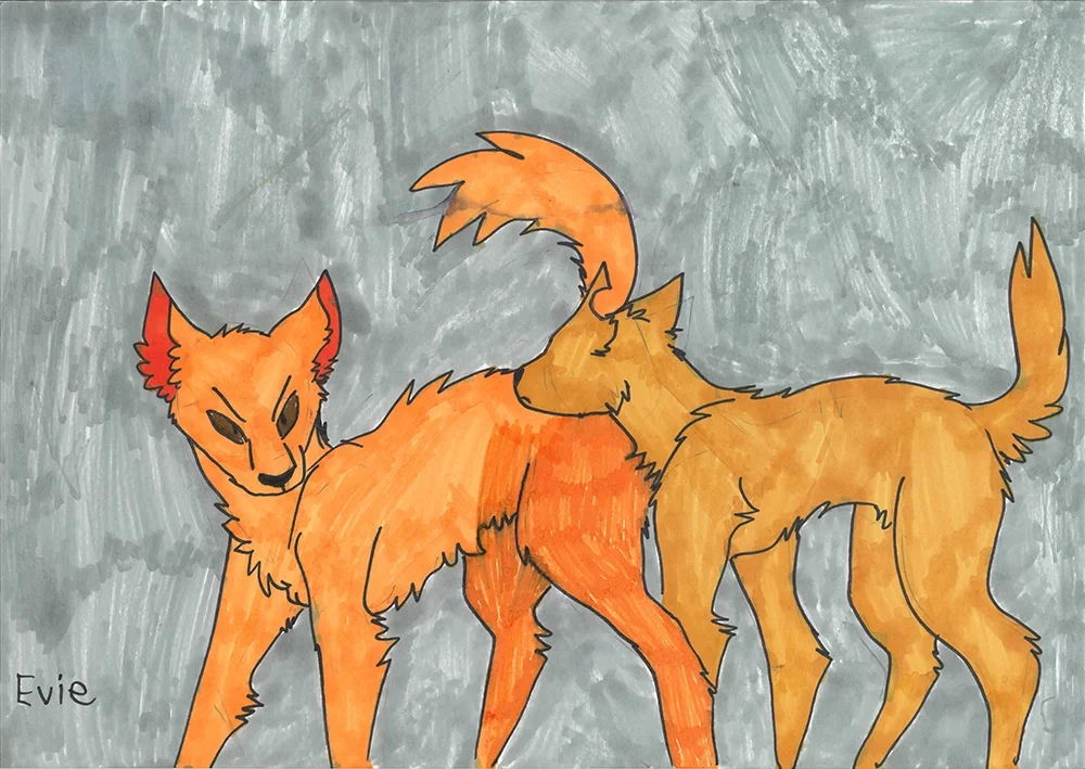 Evie Kitty | Dingoes of K'gari | 2025 | felt pens on paper | 21 x 29.7cm
