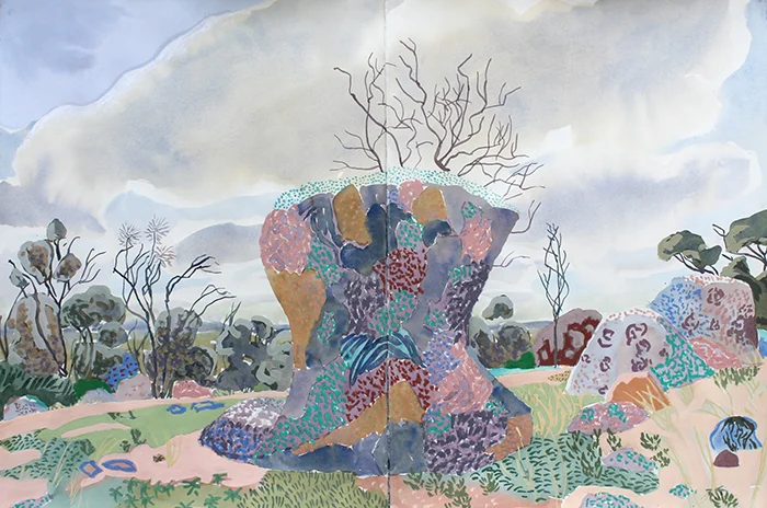 Rock and cloud (Nuggetty Hills) | 2020 | watercolour, gouache and oil pastel on paper | 94 x 132cm