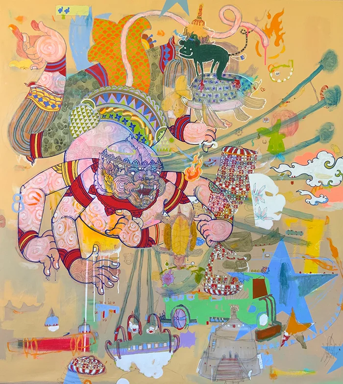 Bundit Puangthong | _Riding Stars_ | 2021 | acrylic and soft pastel on linen | 155 x 143cm