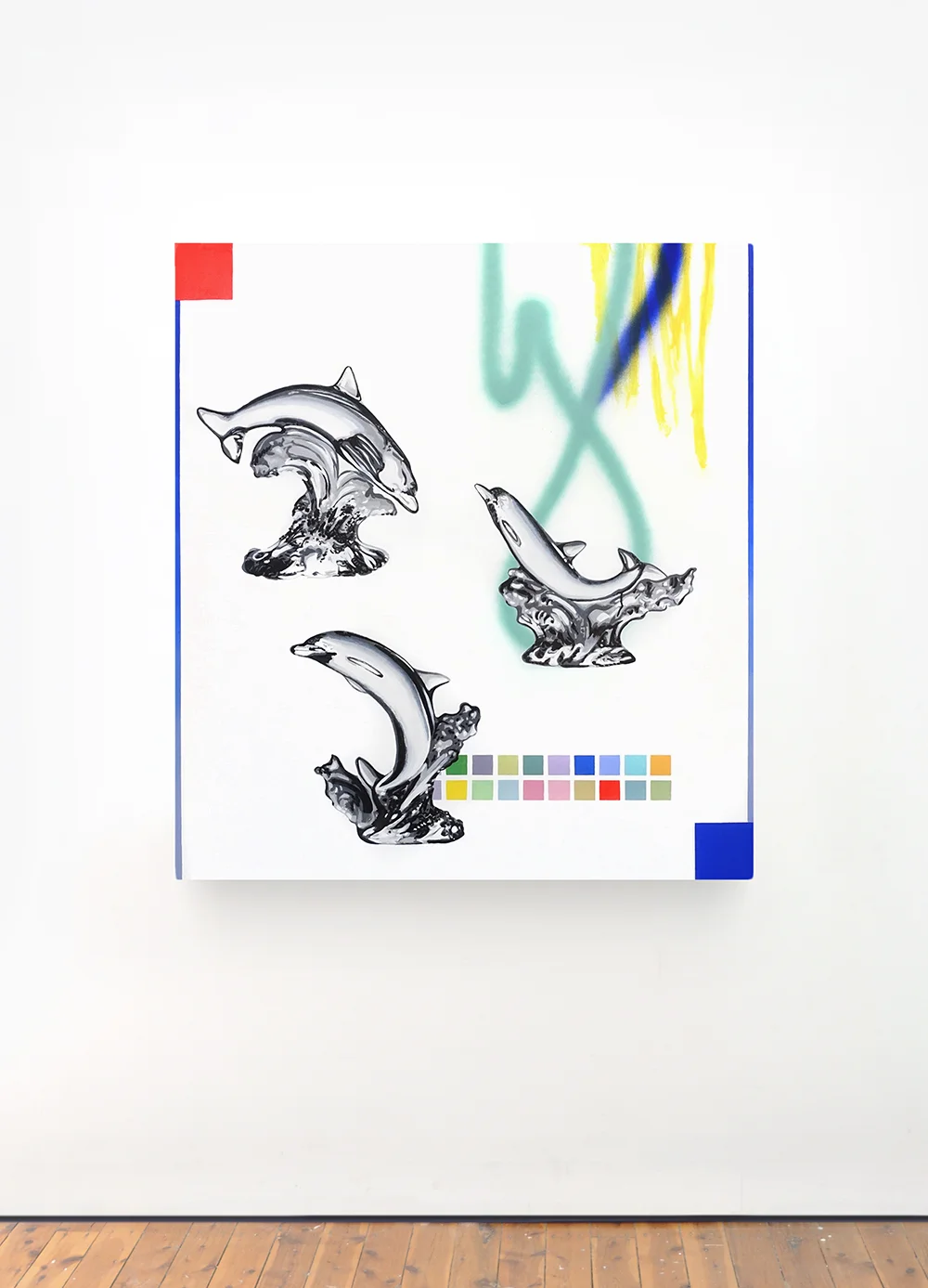 In Uriel, painted crystal dolphins simultaneously represent very recent memetic kitsch and the atavistic, organic sublime. Art has always connected human labour and thought to the physical world - in the 21st century, these representations bridge ever more complex relationships between the animal and the synthetic.