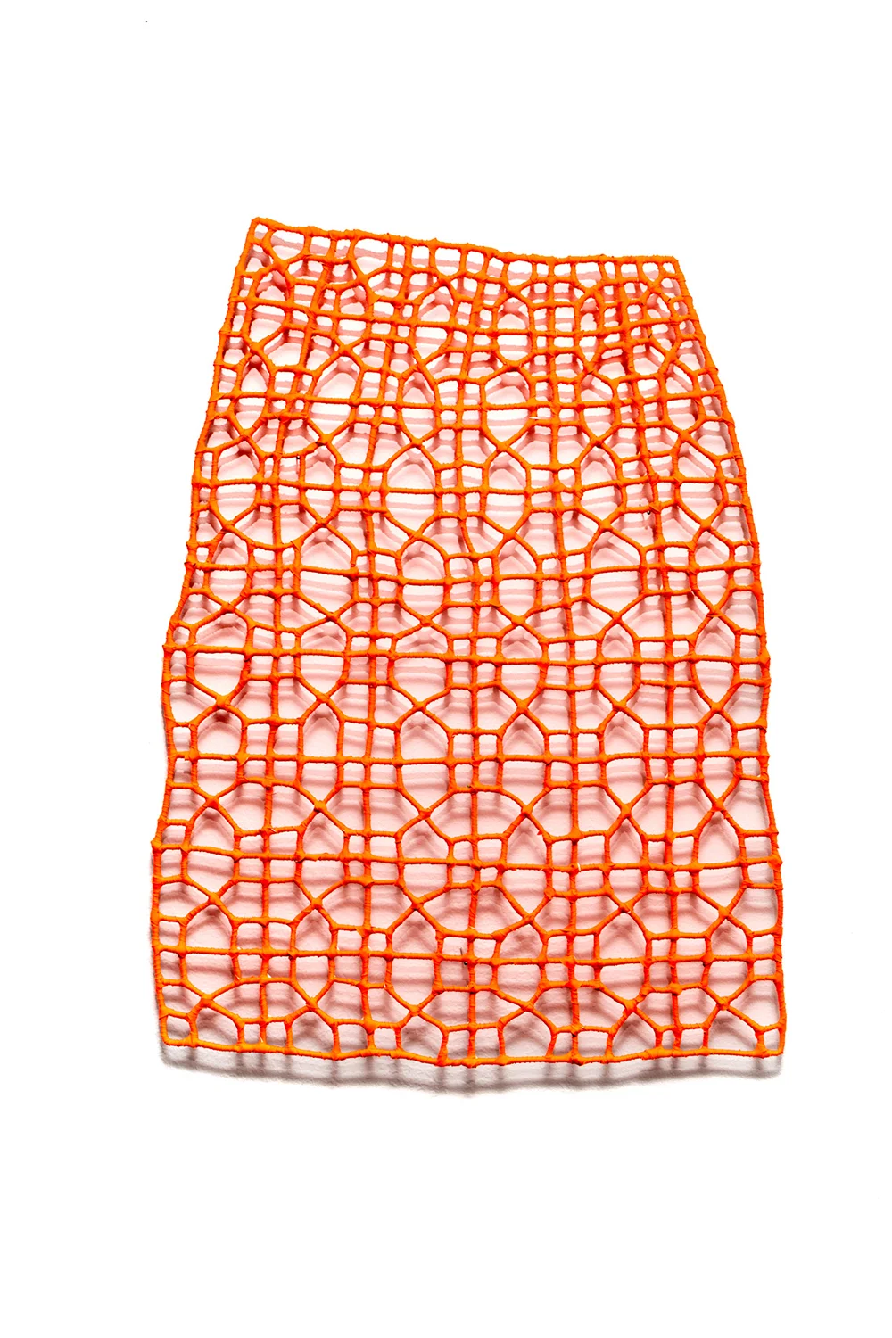 Mandy Ridley | Jaali Skirt | 2023 | copper wire, hi vis fabric | 68 x 55cm
