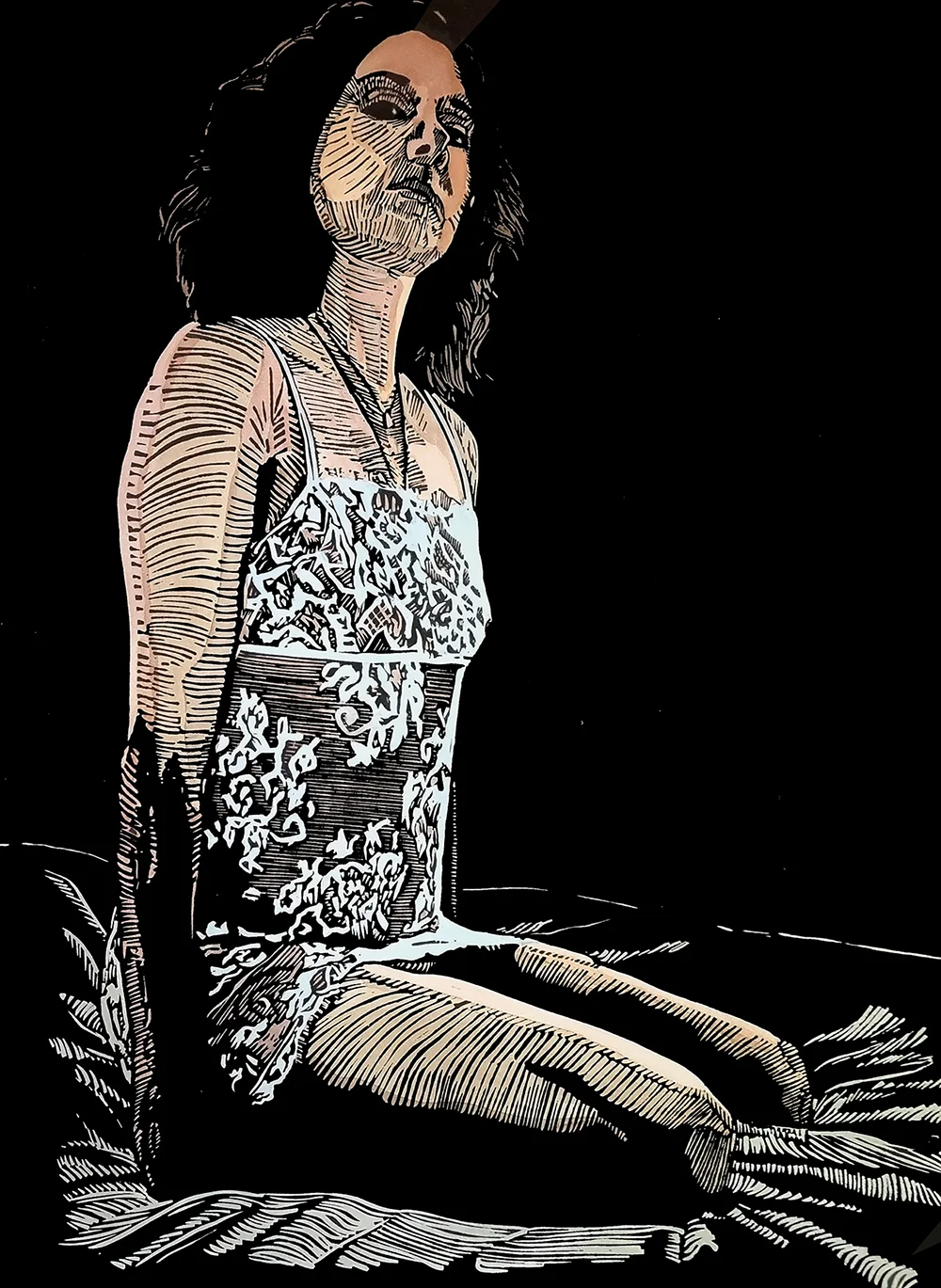 Mark Rowden | Suni Satin Gaze | 2023 | lino print | 90 x 70cm
