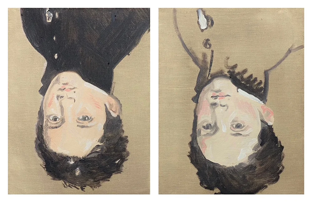 Samuel Condon | Portrait of a boy inverted | 2023 | oil on linen | 35 x 54cm (diptych)